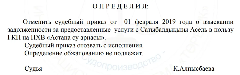 В 2019 году Асель Сатыбалдықызы якобы задолжала «Астана су арнасы» 912 тысяч тенге. В Сарыаркинском районном суде столицы сначала положительно отнеслись к иску горводоканала, но в марте поменяли решение. Неизвестно, за какой период образовался этот долг, но речь идет о гостинице Joy, которую впоследствии закрыли. Сейчас по этому адресу находится тот самый центр восточной кухни, счета которого арестованы в рамках уголовного дела в отношении Кайрата Сатыбалды.