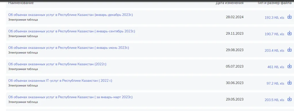 Стоит отметить, что данные по объёму услуг на новом сайте Бюро нацстатистики Агентства по стратегическому планированию и реформам (АСПиР) РК ведут с 2021 года. Также таблицы разных лет отличаются оформлением и наличием некоторых данных.