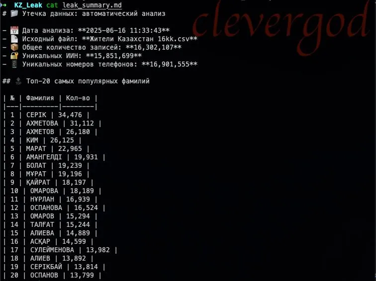 Этим летом в СМИ и социальных сетях разлетелась новость о масштабной утечке. В Telegram-каналах появился файл «Жители Казахстана 2024», где якобы содержались данные 16 миллионов граждан страны – от ФИО и ИИН до адресов и телефонов.