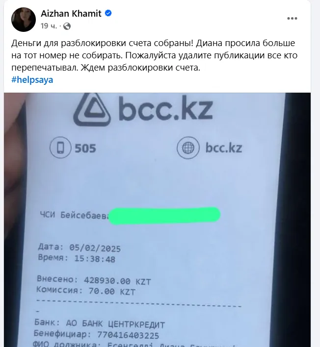 История многодетной матери, до последнего вздоха боровшейся за достойную жизнь своих детей, впечатлила многих. Буквально за несколько дней неравнодушные казахстанцы организовали денежную помощь. Во-первых, для разблокировки счетов родственников погибшей, чтобы можно было оказать дальнейшую поддержку.