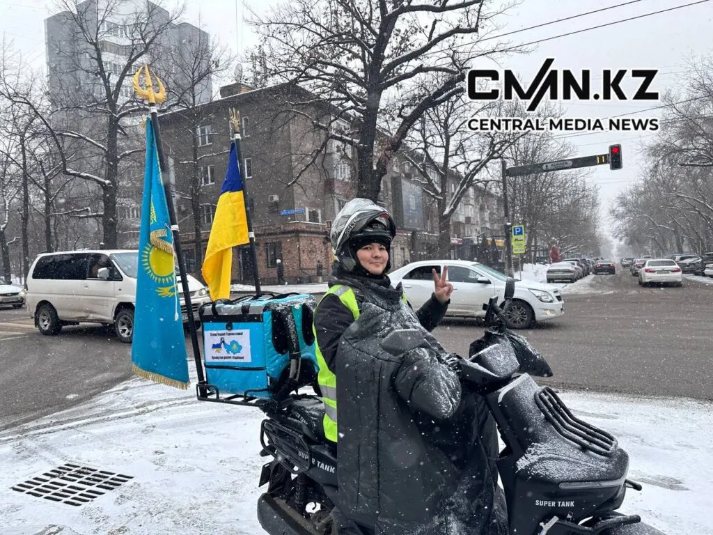Нурали Айтеленов — герой социальных сетей, который разъезжает на мопеде с флагами Украины и Казахстана.