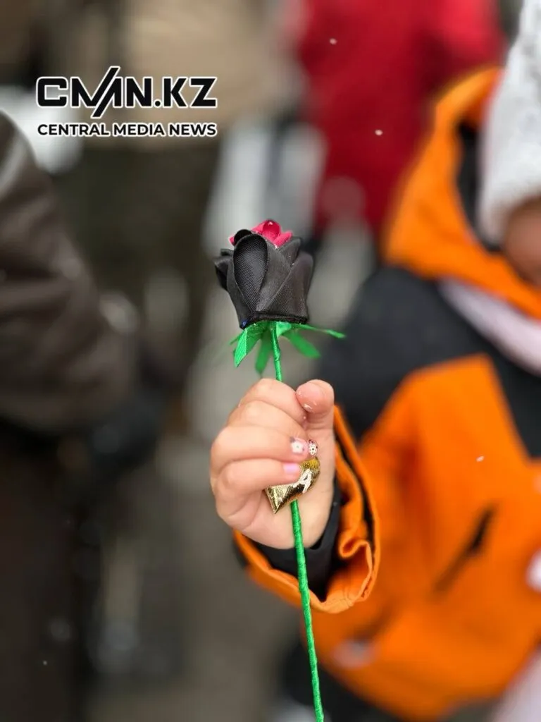 «Черный цвет символизирует нашу землю, а красный — кровь, которую пролили украинцы за свою независимость. Я сделала 24 розы. Хочу, чтобы сегодня 24 февраля 2024 года мы собрали 240 тысяч тенге за эти розы для спасения 24 человек. Это жизнь каждого человека»,