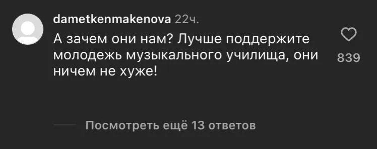 «А зачем они нам? Лучше поддержите молодежь музыкального училища, они ничем не хуже!».