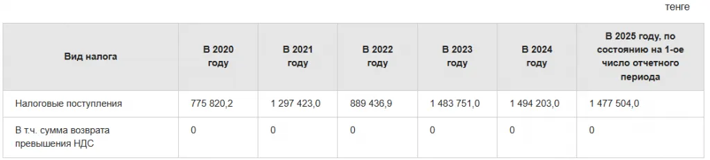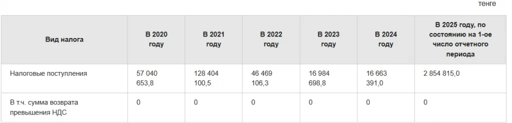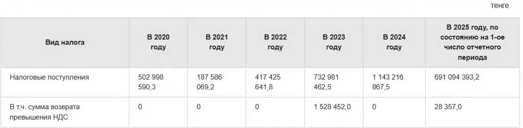 Имея столь крупные контракты, ТОО «БатысАльянсСтрой» выплачивает внушительные налоговые отчисления. С 2015 года компания перечислила в госказну более 4,9 млрд тенге. Самые крупные налоги пришлись на 2024 год – 1 143 216 867,5 тенге.