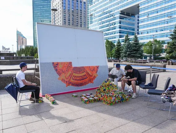 Панно с изображением государственного герба из более трёх тысяч кубиков Рубика собрали в центре Астаны, передаёт CMN.KZ