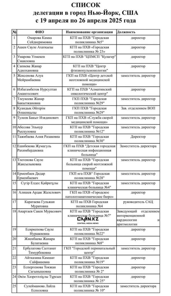В конце апреля 2025 года алматинские врачи полетели в Нью-Йорк для повышения квалификации. Оказалось, что стоимость поездки на одного человека составила шесть млн тенге. По этому поводу в социальных сетях разразился скандал. Некоторые обвиняют Управление общественного здравоохранения в том, что поездки организовывают по завышенным ценам и без проведения конкурсов. Оказалось, что дело не только в УОЗ. Поставщиком услуг второй год подряд выступает одна и та же компания, а договоры с ней по госзакупкам заключают медучреждения, передаёт CMN.KZ