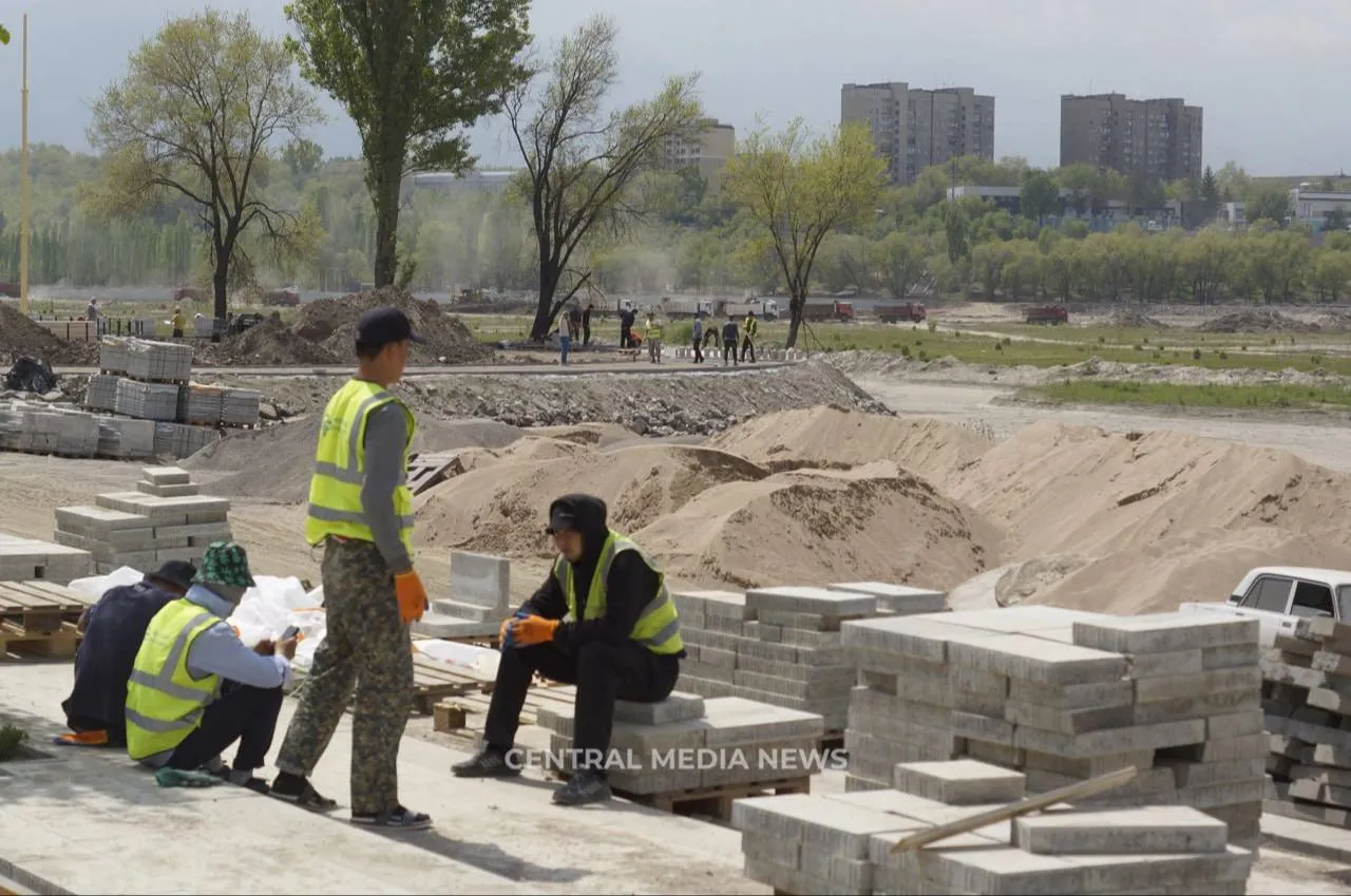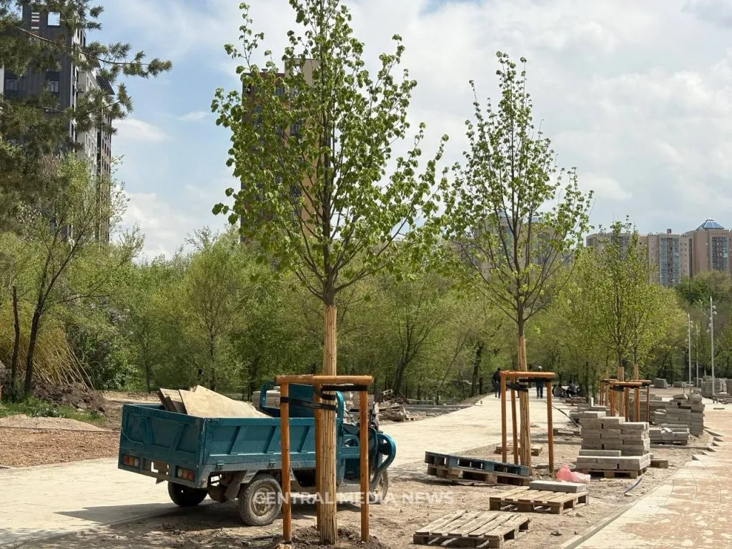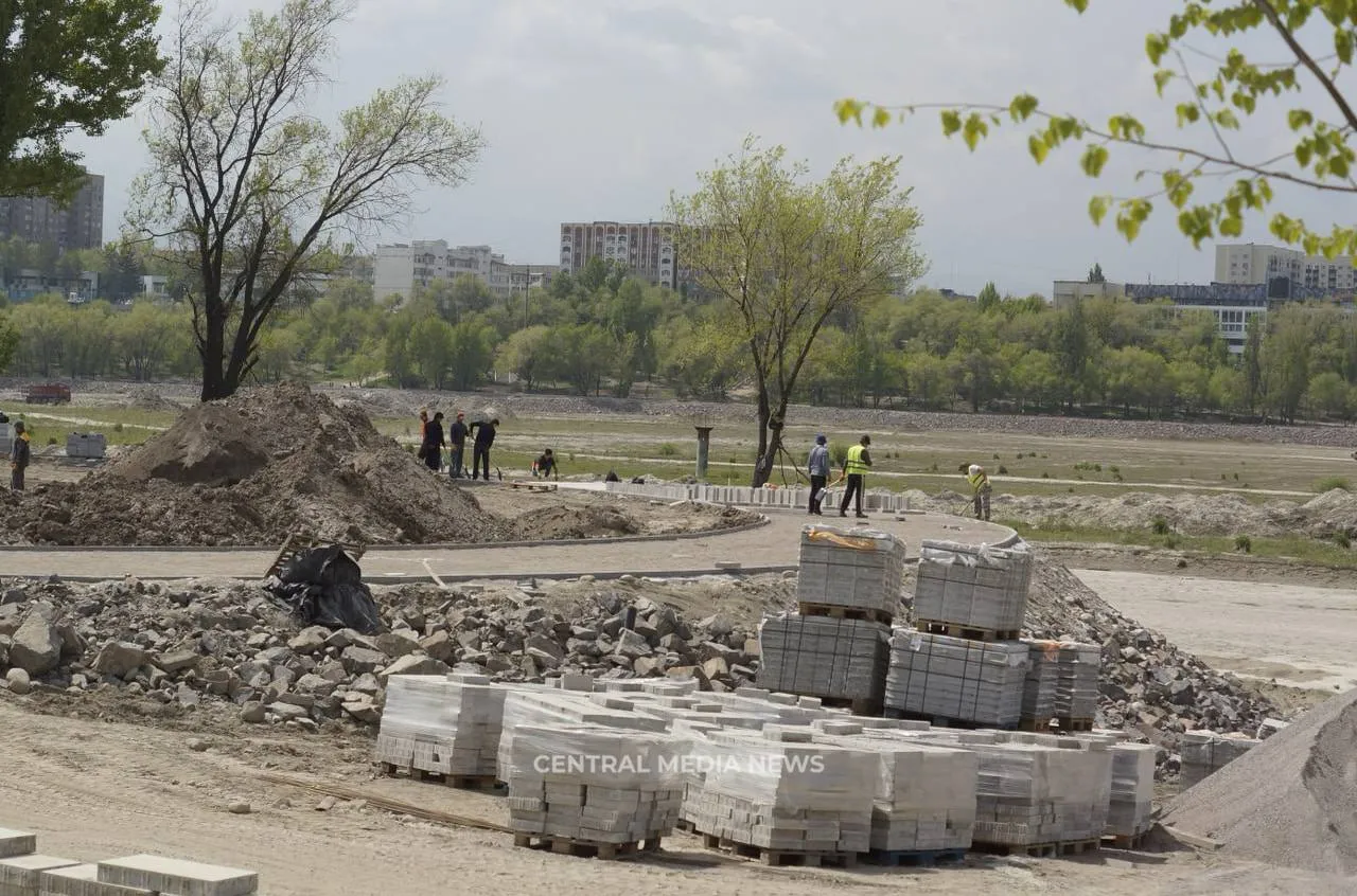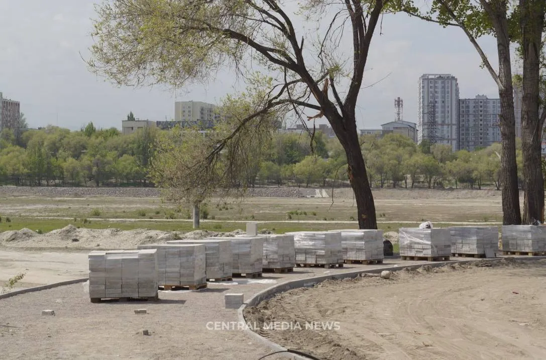 Пройдя по территории водохранилища, корреспондент CMN.KZ попала в самый разгар строительства: в одном месте укладывают брусчатку, в другом — высаживают деревья, а неподалёку рабочие ругаются на прохожих, которые наступают на свежий асфальт.