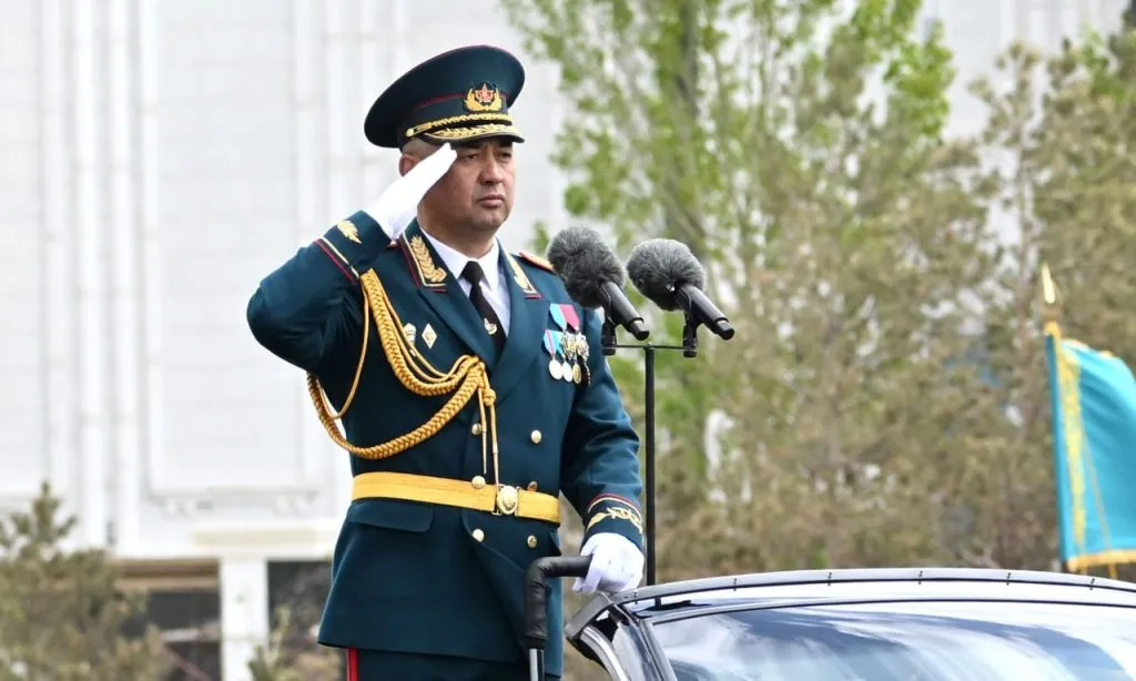 После доклада министр обороны отошёл к строю, и Верховный главнокомандующий Касым-Жомарт Токаев начал свою торжественную речь.
