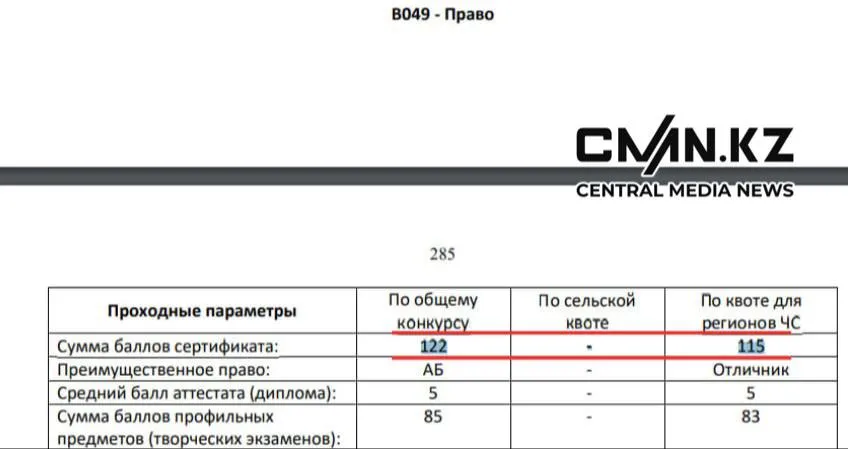 }}Корреспондент CMN.KZ изучила список обладателей грантов и выяснила, что почти каждый пятый счастливчик — выпускник из зоны ЧС. Тенденция касается не только специальности «Право», но и «Финансы, экономика», «Психология» и других. Можно заметить, что проходной балл для абитуриентов из паводковых регионов был ниже, чем для выпускников, проживающих в других частях страны.