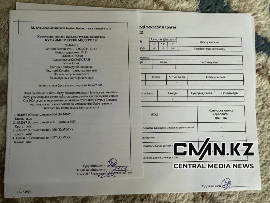 По словам учителя абитуриента, его родители в разводе — мать безработная, а отец трудится слесарем АО «Жайықжылуқуат» с зарплатой 73 тысячи тенге.