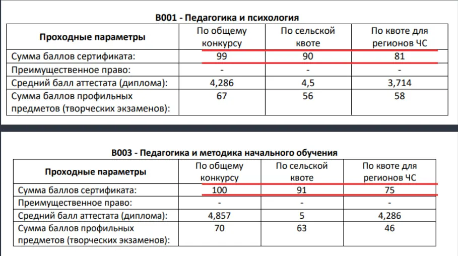 }}Разница в пороговых баллах начинается от 7 до 18, в зависимости от специальности.