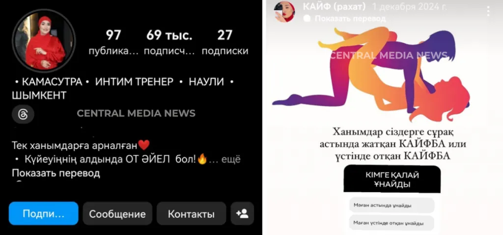 Непонятно, где здесь клевета, и зачем нужно разрешение, если все материалы взяты из открытых источников в интернете и буквально являются рекламой. К слову, аккаунты коучей из Stories Шайх обнаружить не удалось. Возможно, авторы оперативно закрыли их, боясь огласки. Но по запросу "интимная гимнастика" в Instagram действительно находится множество предложений похожих практик. Вот лишь немногие из тех, что удалось обнаружить корреспонденту CMN.KZ.