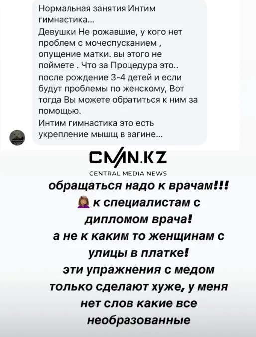 Известная в Казнете блогерша Еркежан Шайх, на днях запостила в Stories видео со страниц покрытых девушек, продающих уроки так называемой «интимной гимнастики». Она призналась, что услышала о подобных курсах для мусульманок случайно. А когда пошла искать в сети, что же это такое, мягко говоря, очень удивилась.