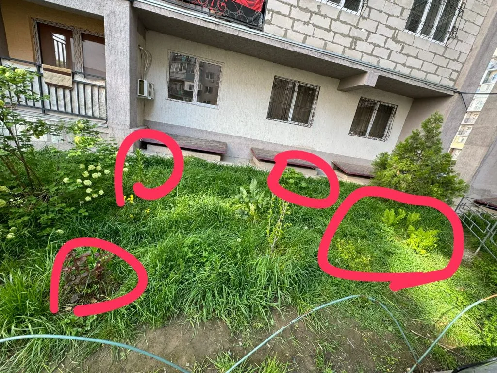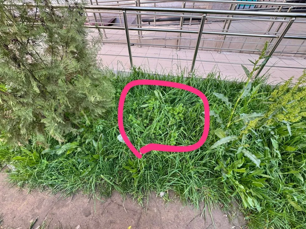 «В начале мая, где-то 6 числа, у нас постригли газон. Перед этим одна соседка сделала фотографии с указанием, где находятся растения, чтобы при стрижке их не трогали. Другая соседка указала контур, где растут цветы, которые не должны срезать, и также отправила фотографии в чат людям, отвечающим у нас за стрижку газона. Не знаю, как работники не смогли отличить цветы от сорняков, об этом история умалчивает».