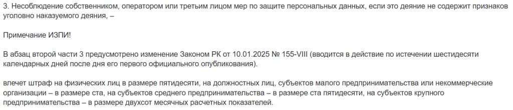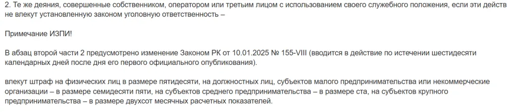 }}Однако, если разбираться в деталях закона, то на сегодня по данной статье предусмотрено совершенно другое наказание. И если распространение персональных данных не является намеренным и не несёт в себе состава уголовного преступления, то цифры, налагаемые на представителей малого бизнеса, которым является ТОО «Даир клиник», не превышают 200 МРП.