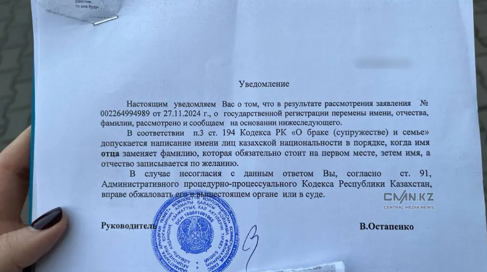 CMN.KZ направила запрос в уполномоченный орган с вопросом: могут ли казахстанцы всё же выбрать матчество?