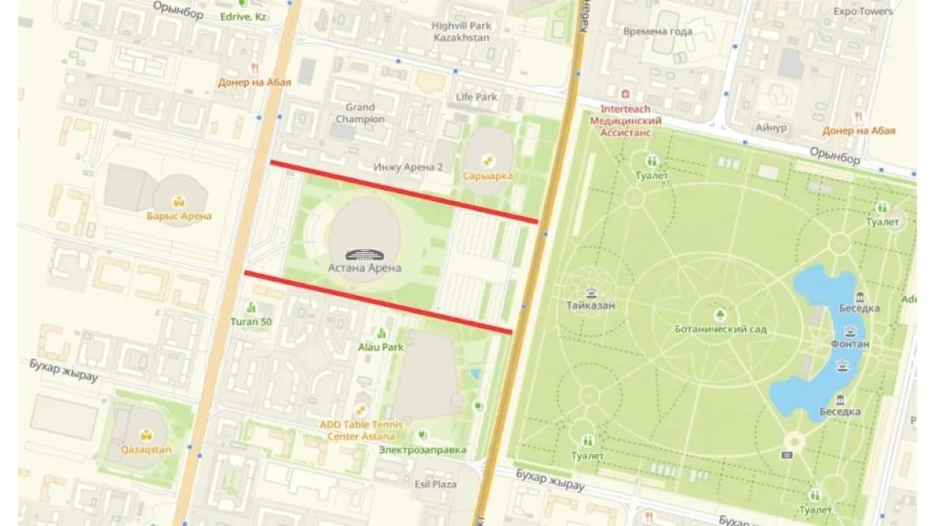 "Припарковаться можно будет на территории стадиона «Астана Арена», ледового дворца «Алау», МЛД «Барыс Арена», велотрека «Сарыарка», Ботанический сад со стороны улиц Бухар жырау и Орынбор, улицы Керей-Жанибек хандар и в других местах парковок", – рассказали в акимате.
