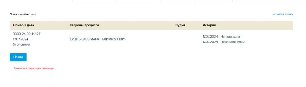 «Дело будут рассматривать в закрытом режиме. Оно поступило в коллегию 17 июля и уже передано судье», — пояснили в суде Жетысуской области.