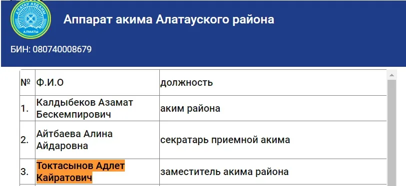 Должности Токтасынов лишился почти сразу. В "Правительстве для граждан" уже 10 января, через день после его задержания, убрали данные о нём. Сейчас его место занимает Бахытжан Наурзбеков. Отметим, что Токтасынов до сих пор числится на сайте госоргана как заместитель акима Алатауского района.