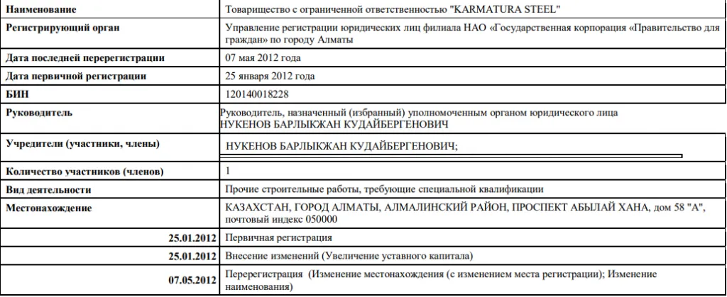 А вот владельцем числится некий Барлыкжан Нукенов. В прошлом он достаточно известная личность – бывший чиновник налоговых органов и государственный деятель.