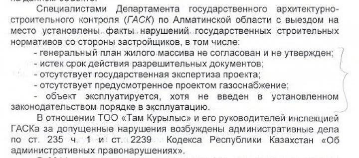 Как потом выяснилось, ТОО использовало землю дважды: продало казахстанцам и заложило банку. Как итог, долгое время покупатели не могли получить документы. Проблемы были и с инженерными сетями, а также коммунальными платежами.
