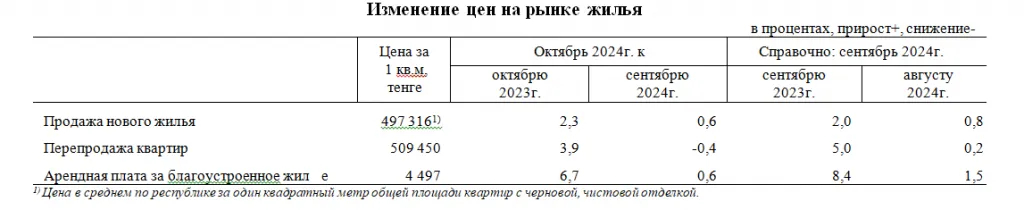 «С сентября по октябрь 2024 года цены на новое жилье выросли на 0,6%, а перепродажи квартир – снизились на 0,4%. Арендная плата за благоустроенное жильё в октябре по сравнению с предыдущим месяцем повысилась на 0,6%», — сообщает статистический портал.