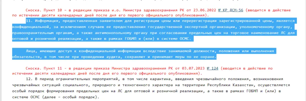 По полученному от ведомства Минздрава ответу следует, что проверить предельные цены на товары, получить копии счёт-фактур, таможенные декларации и прочие документы, определяющие конечную стоимость продукта, невозможно – информация конфиденциальна.