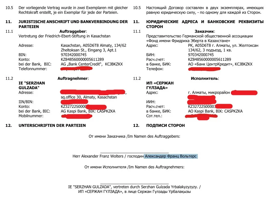 Из достоверных источников стало известно, что 17 февраля 2025 года атташе по культуре посольства германии господин Сассе направил письмо руководителю казахстанского представительства Фонда Фридриха Эберта Александеру Францу Вольтерсу, где потребовал разъяснить сотрудничество с ЛГБТ-структурами, чтобы избежать подрыва имиджа немецкой стороны.
