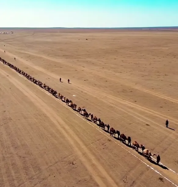 1000 верблюдов выстроились в ряд, который протянулся на девять километров. Караван прошёл по специально подготовленной дороге длинной в километр.