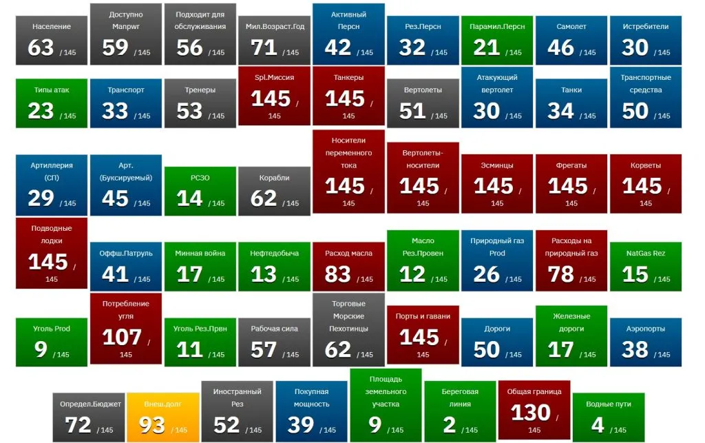 При этом лидером рейтинга стал США, там наикрупнейший военный бюджет - 800+ млрд долларов. Так же в лидерах Россия со своим ядерным потенциалом и развитой оборонной промышленностью. И Китай, который имеет самую большую армию и провел масштабную модернизацию ВМС.