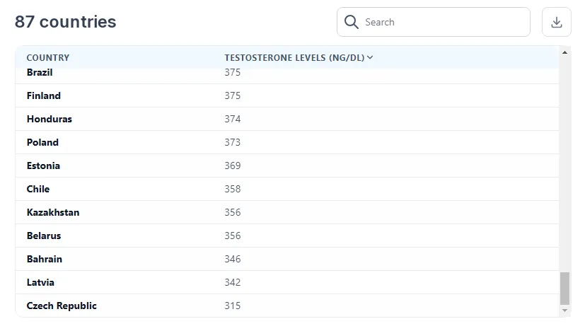 Прежде, чем показать результаты, исследователи из World Population Review уточнили, что при рассмотрении уровня тестостерона по странам изучается ряд факторов. Однако в целом исследование трудно поддается количественной оценке и обобщению, поскольку для окончательного определения необходимо провести тестирование отдельных людей.