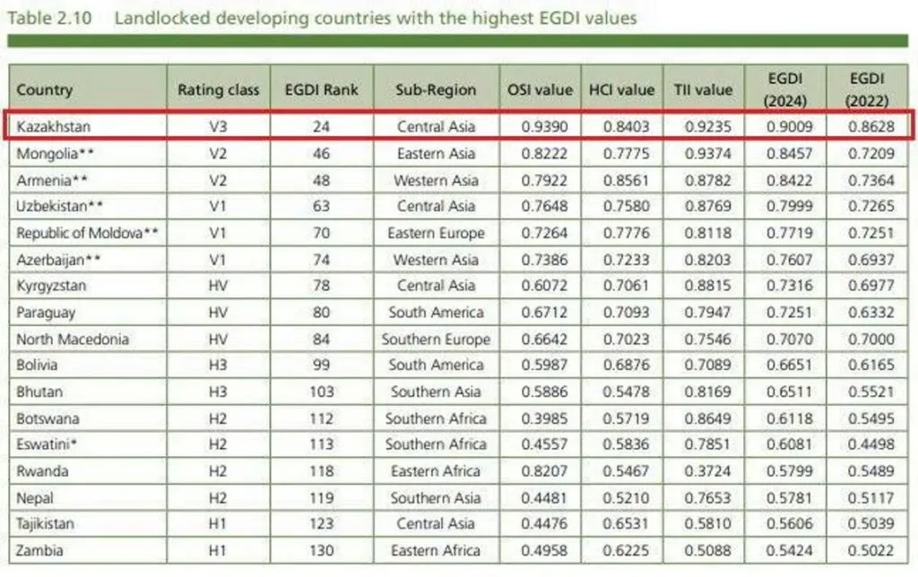 Кроме того, Казахстан значительно улучшил свои позиции по индексу телекоммуникационной инфраструктуры (TII), поднявшись на 23 позиции и заняв 41-е место.