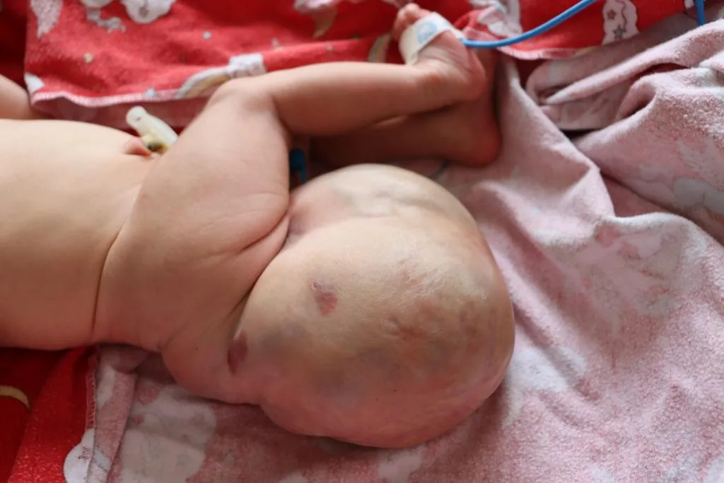 Сразу после появления на свет малыша перевели из роддома в Центр детской неотложной медицинской помощи в отделение реанимации. После подготовки к операции, на вторые сутки жизни, неонатальные хирурги удалили опухоль.