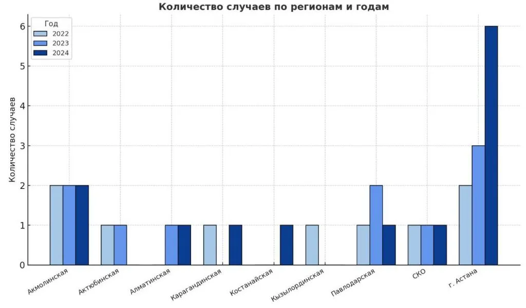Наибольшее количество случаев в Астане – шесть пациентов, единичные случаи зафиксировали в Акмолинской, Алматинской, Карагандинской, Костанайской, Павлодарской и Северо-Казахстанской областях.