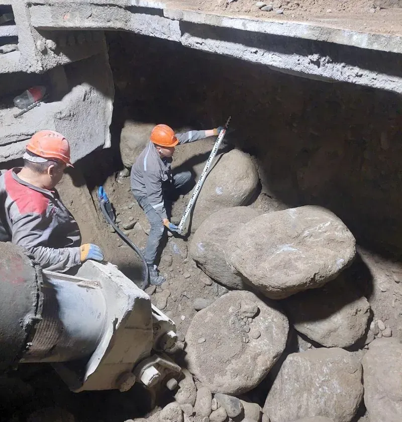"Скорость может замедляться из-за валунов. Так, на 120-метровом участке попадались валуны диаметром от 1,5 до трёх метров — их дробление и извлечение занимает дополнительное время", – пояснил Укшебаев.