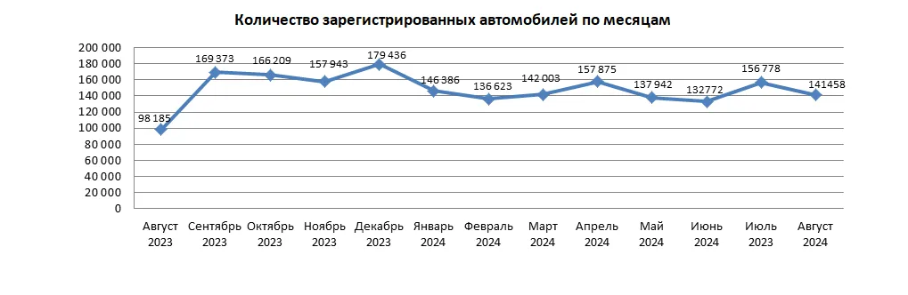 В августе 2024 года на учёт в Казахстане поставили 141,5 тыс. автотранспортных средств. По сравнению с соответствующим периодом прошлого года показатель увеличился на 44,1%, передаёт CMN.KZ