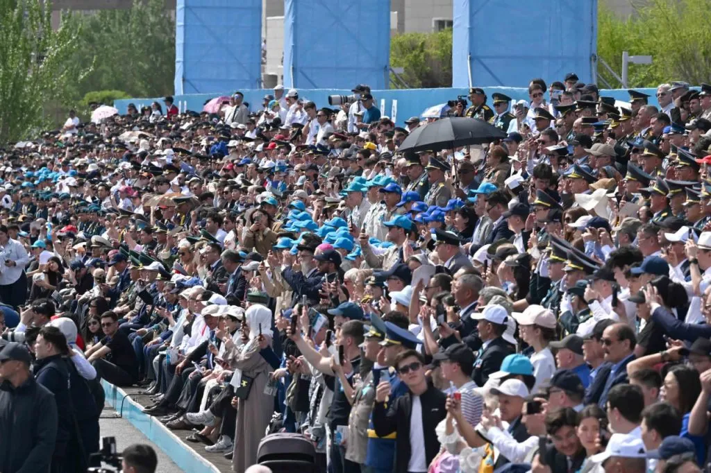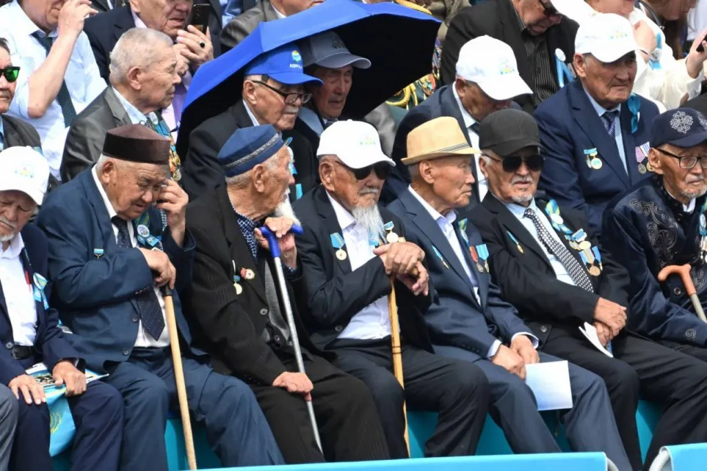 К 11 утра на площади Независимости у монумента «Қазақ елі» собрались все приглашённые гости. Среди них — ветераны Великой Отечественной войны, труженики тыла, действующие военнослужащие, представители силовых структур и дипломатического корпуса.