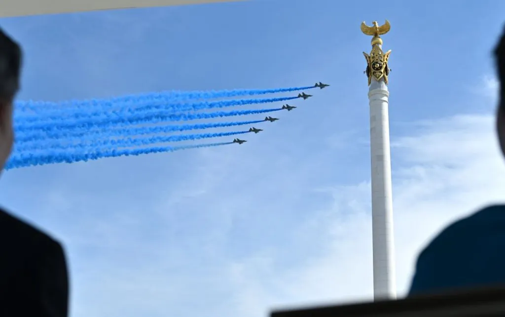 Над Астаной пролетели 66 летательных аппаратов, в том числе истребители, транспортная авиация и вертолёты.