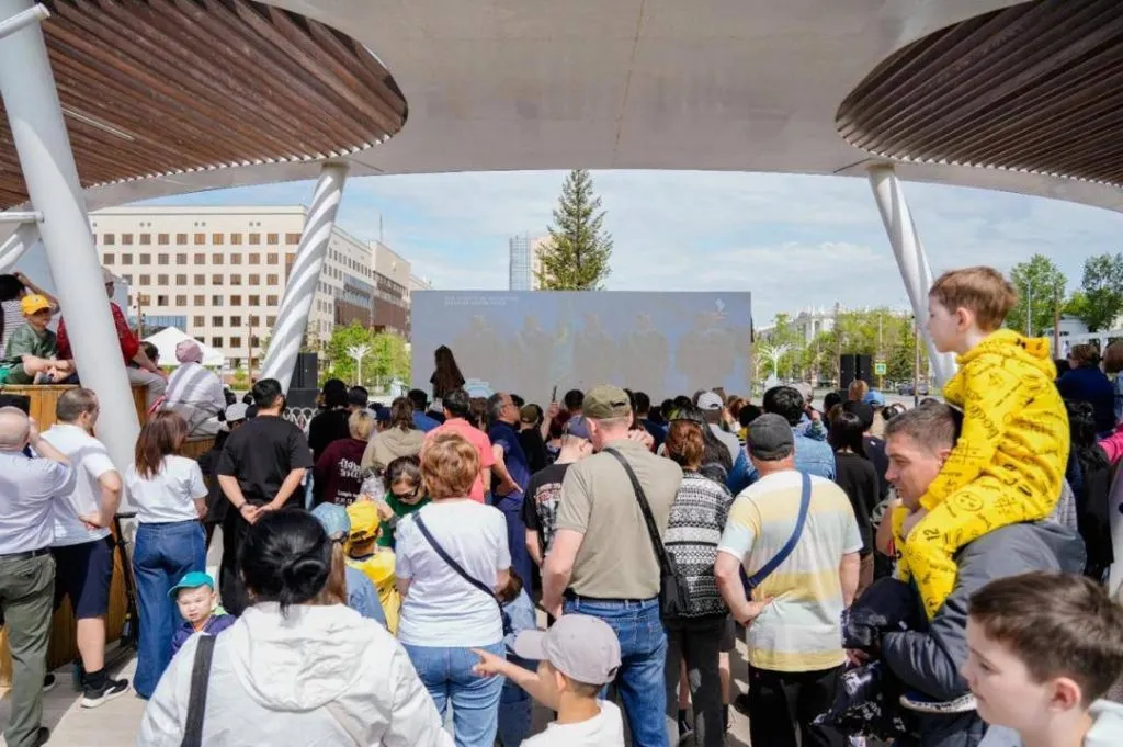 В Шымкенте его смотрели на экранах возле Молодёжного ресурсного центра, фонтана тюльпанов и в Туркестанском дворце.