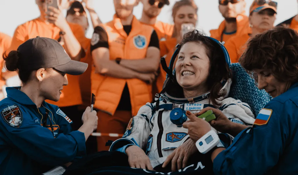 Олег Кононенко за пять космических полётов набрал в сумме 1111 суток (больше всех среди землян), Трейси Дайсон за три полёта — 373 суток.