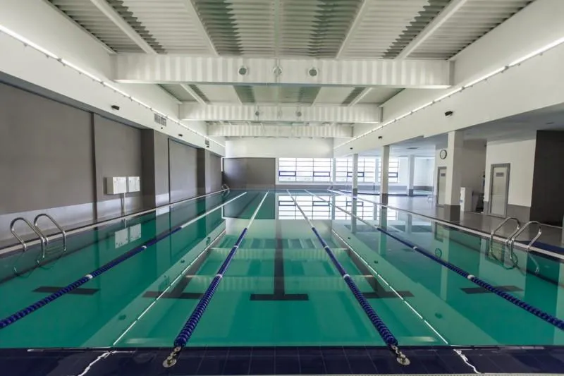 - 25 метровый бассейн на пять дорожек. Размер и глубина от 1,2 м до двух метров позволит проводить занятия по аква-аэробике и плаванию.