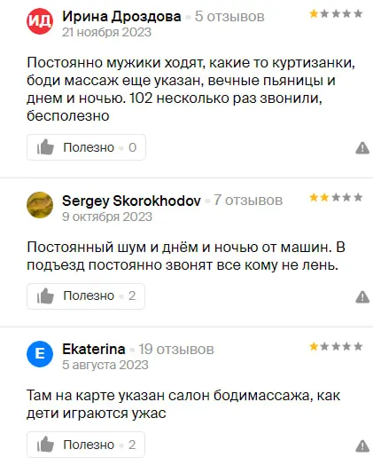 Некоторые пользователи ещё в 2023 году жаловались на шум и якобы на то, что на территории ЖК работает салон, оказывающий услуги боди массажа.