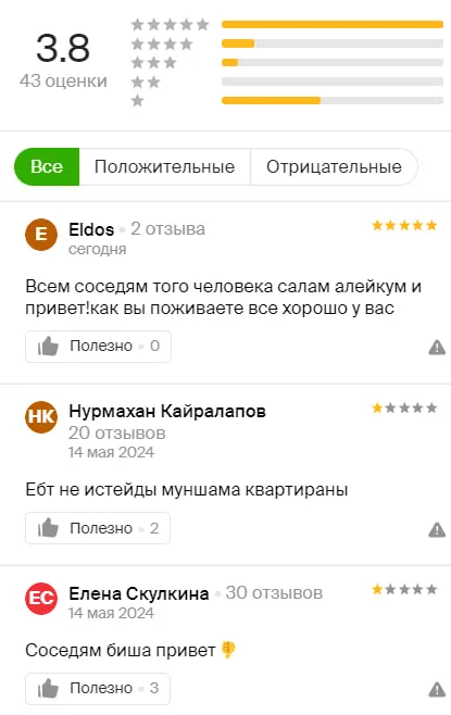 Другие плохие отзывы о жилом комплексе накопились уже после приговора Бишимбаеву.