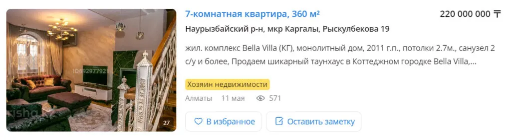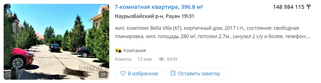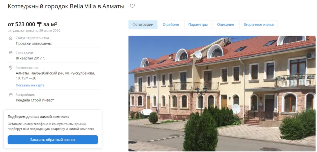Сейчас на сайтах продажи недвижимости можно заметить объявления о продаже квартир в ЖК Bella Villa. Цены начинаются от 150 миллионов тенге и выше.