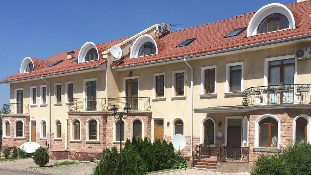 «Таунхаусы жилого комплекса представляют собой двухэтажные здания с цокольным этажом и мансардой. Фасады отделаны декоративной штукатуркой и мраморной плиткой. С тыльной стороны есть приусадебные участки площадью около 2 соток»,