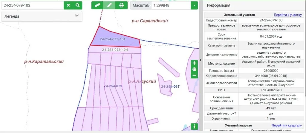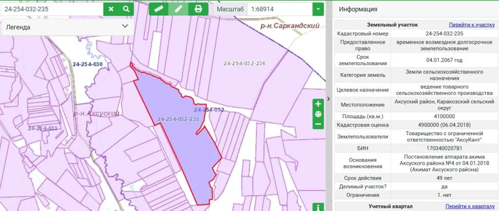 Отметим, что это не единственный участок, который получило ТОО от государства. В Аксуском районе "АксуКант" арендуют два надела по 2500 га и 410 га. За административное нарушение на этих участках компания даже получила штраф в 1,2 млн тенге.