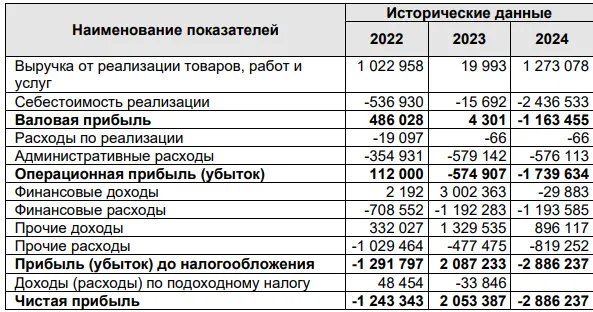 "Анализ данных финансовой отчётности за 2022 – 2024 годы отражают неэффективность операционной деятельности ввиду наличия ежегодно растущих убытков и отсутствием политики управления оборотным капиталом. Финансовая устойчивость, обеспеченная уставным капиталом, которая представляет собой стоимость основных активов компании объектов недвижимости, может быть подвергнута сомнению в случае обесценения данных активов", – указали в отчёте об оценке.