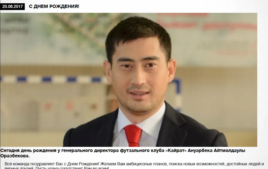 Кроме строительства ЖК, у Ануарбека Оразбекова есть своя отдушина, которая радует также и болельщиков футзального футбола. Именно он значится директором и соучредителем ТОО "Кайрат футзал". В таком ключе неудивительно, что среди партнёров двукратного обладателя кубка УЕФА значится группа компаний «Элитстрой».