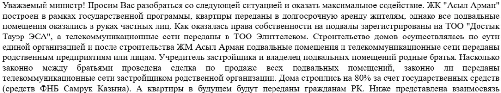 - ТОО "Риэлт Комфорт" – доля 20,94%, создали в ноябре 2016 года. Учредителем значится Майгул Байменова (Входила в список аффилированных лиц АО «Ипотечная организация «Экспресс Финанс»). Директорское кресло занимает Мурат Нурсеитов. Занимается ТОО покупкой и продажей многоквартирных и жилых домов (особняков);