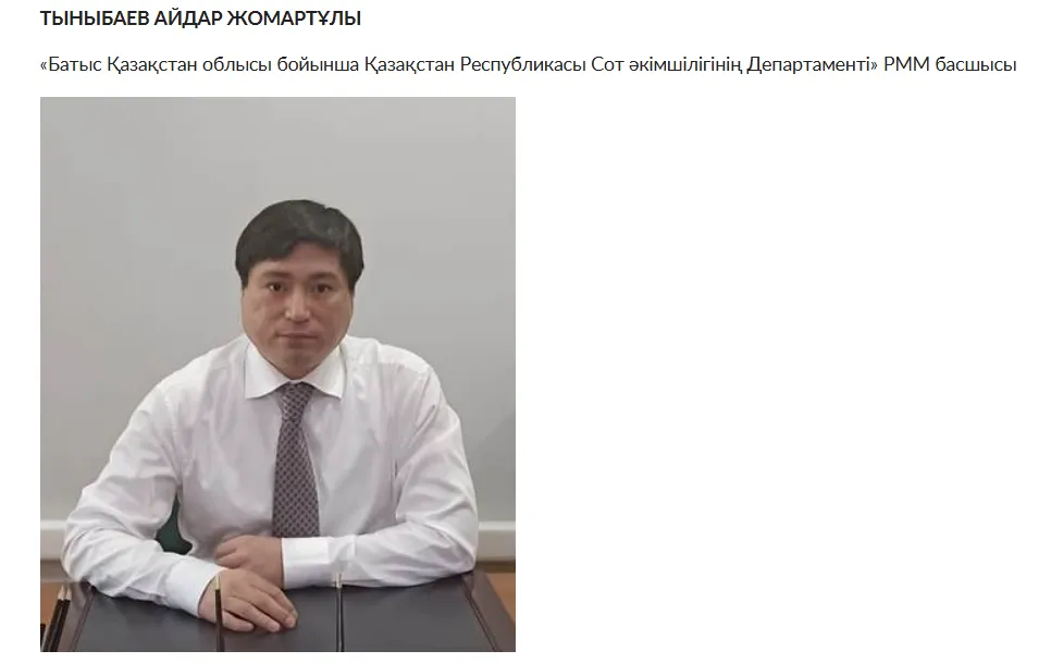 Оказалось, что экс-помощник Бишимбаева с декабря 2023 года занимает пост руководителя Департамента судебной администрации по Западно-Казахстанской области.